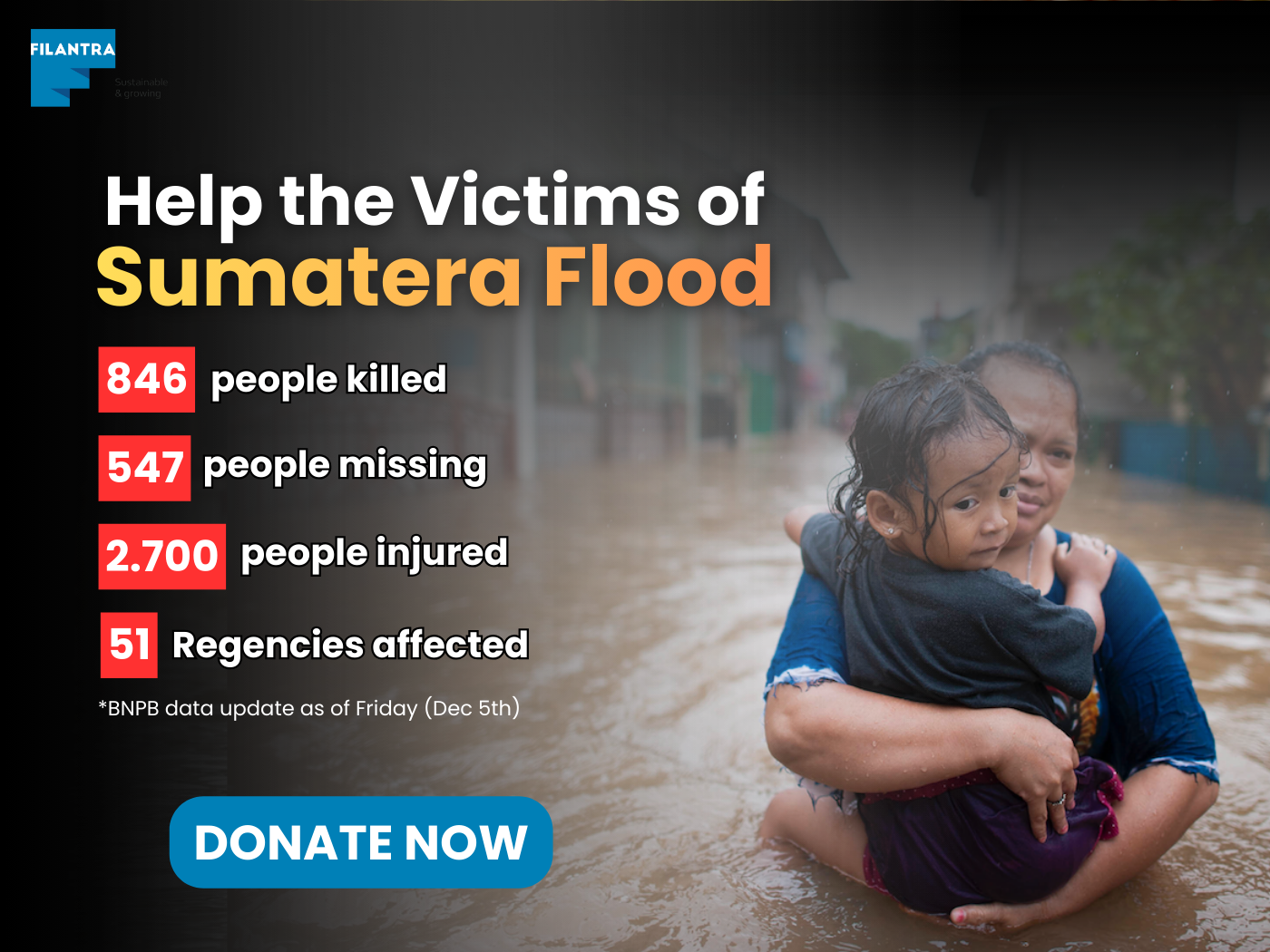 Thank you for sharing your kindness and bringing smiles to our brothers and sisters in Sumatra, Indonesia, who are currently affected by the floods and landslides.