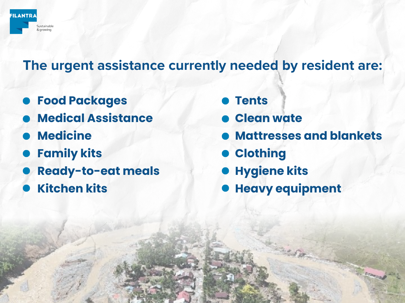 With many areas cut off and the number of displaced residents continuing to rise, meeting basic needs has become extremely urgent. Below, we’ve listed the emergency items that must be prioritized for the affected communities.